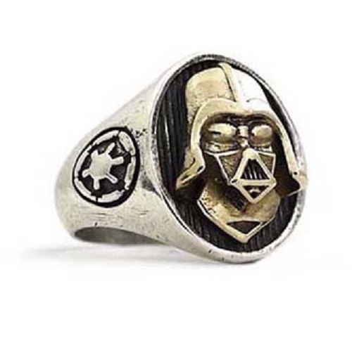 Argento con riproduzione fedelissima in miniatura della maschera di Dart Fener in argento dorato.