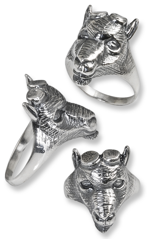 Gioiello accuratamente rifinito in ogni dettaglio, raffigurante la testa di un caprone senza corna.