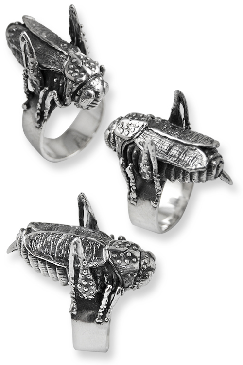 Anello in ARGENTO 925 modellato artigianalmente, raffigurante una cavalletta.